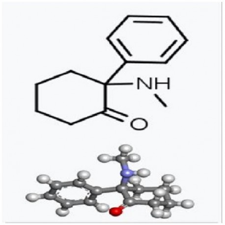 Descholoroketamine is a chiral molecule and is often produced as a racemate. Des- is a prefix used in chemistry to denote the absence of a functional group (in this case “chloro”) hence deschloroketamine is named for lacking a chlorine substitution on its phenyl ring, which is found in ketamine.